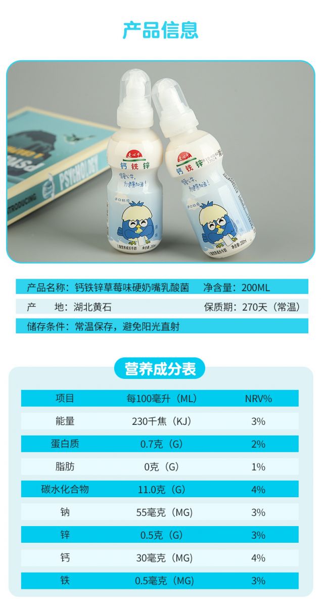 Ca-Fe-Zn strawberry flavor 1*24*200ml Children yoghurt series